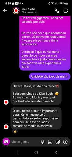 Mandei esse relato por direct do restaurante e o único retornl que tiver foi da imagem abaixo. Agora já entendi que não estão 100% voltados para a experiência do cliente. O...