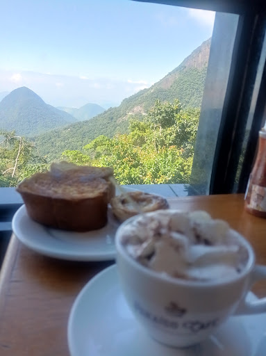 Estivemos meu marido e eu em Teresópolis e ao irmos embora , paramos para um café. Esta situado na estrada principal da entrada de Teresópolis, ao lado do mirante para o Dedo de Deus. Possui estacionamento amplo tanto na frente do café e restaurante quanto atrás. Local é bem organizado, climatizado com amplas vidraças que te dá uma visão panorâmica e linda do Vale Sentamos numa mesa próx a janela e nos rendeu lindas fotos e café com luz natural Você encontra uma linha muito completa de produtos como queijos, linguiças, vinhos, sucos, biscoitos, doces e muitas outras delícias. Os preços são referentes a esse tipo de lugar mas não achei nada que já não estou acostumada a ver. Sentamos e pedimos dois capuccinos, dois pastéis de nata e duas torradas Petrópolis na manteiga Estava tudo muito gostoso a única coisa que não gostei é que não há serviço a mesa ou seja vc pede, paga e pega seu pedido levando até a mesa. Achei que para cobrar o que cobram deveriam pelo menos ter essa prática como tantos outros que conhecemos. Quando fomos estava vazio o que favoreceu nosso trânsito com xícaras e pratos mas num dia que fica mais cheio é bem mais complicado. Fora isso tudo ótimo Banheiro externo bem limpo, amplo...