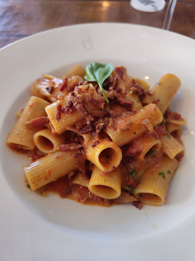 I also ordered the Amatriciana. A classic Roman pasta with very simple ingredients, pasta, a simple tomato sauce, guanciale, pecorino and black pepper. I understand it may be harder to get some of the correct ingredients in Brazil but again this tasted so different than the real thing, and not good. The tomato sauce was again super acidic and sour. The guianciale (or bacon) was cut super small and you didn't get the delicate flavour or the pork fat or black pepper in the dish, just an overwhelming flavour of bad tomato sauce . I took three bites and couldn't eat anymore . I'm fine to pay the full bill , there was no deduction from the bill, the staff seemed almost used to it.