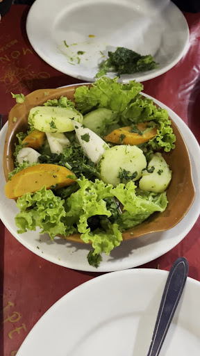 We really enjoyed our time at this restaurant near post 4/5 in copacabana. We probably would not have ventured off to this street if our hotel had not recommended it to us but we are so glad we did ! Our server Juan Pedro was stoic but wonderful ! No detail was left un touched ! He was highly attentive and polite and happy to help us navigate our terrible attempts at Portuguese. We recieved 5 star service and enjoyed delicious food and atmosphere. We also recieved complimentary caiparhinias because we were staying at a near by hotel (Rio Othon palace) my personal favorite thing we ordered was a hot shrimp cheese appetizer and asparagus soup. I will say I wish there was more evidence of asparagus though. Portions here are humongous!! We ordered the bbq for 2 platter and it was huge !!! We couldn’t even come close to finishing it so we wrapped it up and gave it to some homeless people we met on the walk home. As we were leaving the owner came up and introduced himself and asked us if we’d like another caipherinia but to go !! Of course we said SIM !!! thankyou for a wonderful dining...