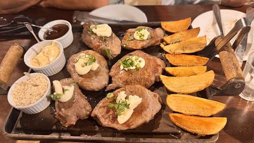 Pegamos uma porção de panceta por acaso, pois era um pedido de outra pessoa que foi feito errado e nós aceitamos comprar, estava muito suculenta e saborosa. Combinou bem com o chopp. Os molhos de mostarda e mel e o cream são fortes num bom sentido, temperados na medida certa.