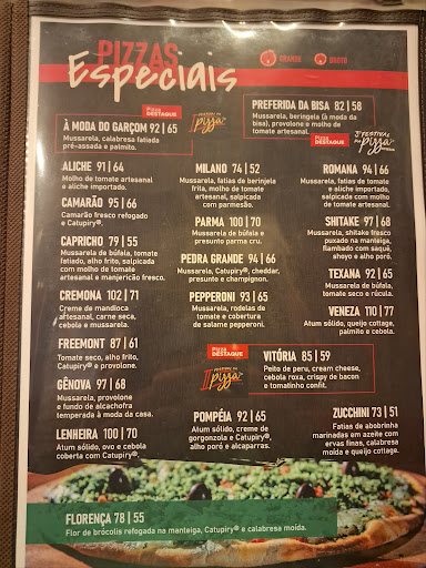 Read moreAtendimento péssimo. A pizza é ok, mas o valor é bem caro, valor de pizzarias excelentes de São Paulo, média de 90 reais a pizza grande. Tive uma situação com atendimento que nunca mais irei voltar. Chegamos cerca de 21h na pizzaria, ficamos aguardando uma mesa cerca de 30 min. Quando sentamos a mesa, o horário de pico já havia passado. Mesmo assim, todas as vezes que chamamos garçom tivemos que insistentemente chamar e demoraram para nos atender. E uma vez, que foi a gota d’água. Garçom passou na mesa e pedimos uma cerveja. Ele demorou 20 min e não voltou com a cerveja, precisamos chamá-lo novamente. Ele veio e meu cunhado pediu para que ele servisse o restante da pizza e touxesse a cerveja que já havíamos pedido. Eu também virei para ele e pedi “será que você também poderia trazer mais guardanapo por favor?”, pois a mesa estava sem guardanapos desde que sentamos. Ele virou pra mim e falou grosseiramente “uma coisa de cada vez, porque eu não consigo”. Nisso, nós já estávamos há 20 min esperando um atendimento e atenção e ele ainda mandou essa pra mim, uma mulher que pediu a ele com educação. Duvido que ele responderia isso pra um bombado de academia. Meu marido estava ao meu lado e respondeu a ele que não gostou da resposta e não concordava com esse tipo de atendimento, ao que o garçom respondeu novamente grosseiramente “então pode falar diretamente comigo porque eu sou o gerente”. Enfim, todos na mesa ficaram desconcertados com tal atitude GROSSEIRA. Ele serviu os pedaços restantes da pizza e nos apressamos para ir embora porque ESTRAGOU completamente nosso momento de bem estar em família. Ele disse que poderia chamar a chefe dele Natália, que nunca apareceu para falar conosco na mesa, mas percebi várias olhadas para a nossa mesa e fofoquinhas. Enfim, atendimento bem baixo nível mesmo, nada comparado com o básico que temos em São Paulo. Só recomendo se você quiser levar...
