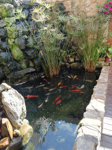 O local impressiona logo na chegada, as flores penduradas na varanda de madeira já torna aconchegante a entrada. Há algumas vagas pra estacionar na frente, mas nos fundos tem um amplo estacionamento. O buffet tem uma grande variedade, me deliciei com um pintado assado, arroz negro com salmão e comida japonesa. A esposa foi de carne recheada com bacon e arroz branco e outros itens. Tem também uma mesa com sobremesas e sucos naturais. Tudo estava muito saboroso! A música instrumental que tocava ao fundo era agradável, calma e tranquila. A bebê ficou o tempo todo andando ao redor do lago de carpas com cascata e se divertindo com os passarinhos que entravam pra comer. O preço foi justo pela experiência que tivemos. Pretendemos voltar!