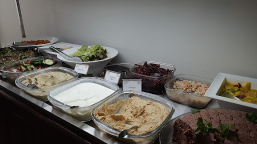 Mas o buffet de pratos frios tem muito mais a oferecer. Salada de pepino com yogurte, abobrinha feita como uma espécie de caponata, palmito, babaganush, homus e outros "patês" que farão você limpar o prato com o pão sírio.