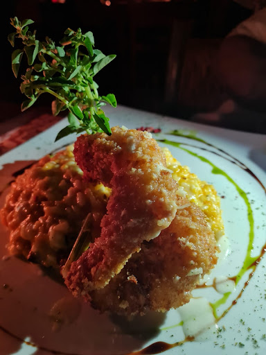 Pedimos uma entrada e os pratos. A entrada ínfima e não condizente com o valor cobrado. Os pratos: um macarrão com mignon em que o macarrão não estava temperado com nada, muito mole e frio. Meu namorado pediu um risoto com parmesão que parecia ter apenas arroz com algum tipo de caldo engrossado. Ambos os pratos não condizentes pelo valor cobrado.