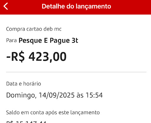 Bom dia O pesqueiro é muito bom, mas tem bastante coisa que deixou a deseja sábado, o atendimento (já fui outras vezes e foi melhor) mas esse final de semana foi horrível, banheiro sujo fedendo e nem estava cheio, o trocador é horrível pra trocar a criança, eu pedi uma coisa e veio outra, o peixe estava sem tempero, e achei a conta muito alta, devido o peixe ter vindo a mais.
