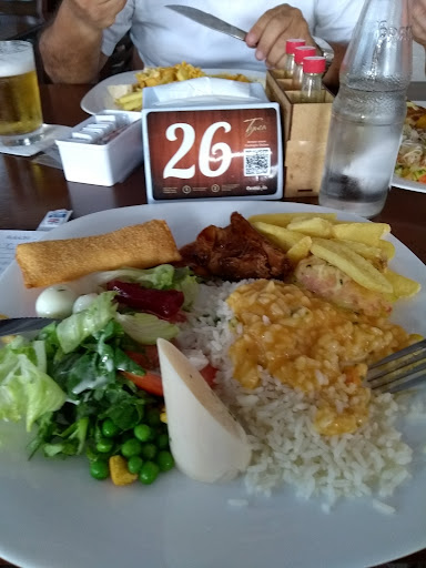 Foi a primeira vez que fomos lá almoçar sempre que vamos é a noite e comemos os petiscos que são maravilhosos.. A comida estava muito boa, porém acho que falta uma variedade maior, vi que tem muitas coisas fritas e assadas, mais não vi nada ao molho como uma carne de panela, frango algo do tipo e também não tem massas.. Uma coisa que fiquei mais insatisfeita foi que eu e meu marido chegamos e sentamos, não sabíamos como que funcionava, e ficamos uns 5 minutos lá sentados e ninguém foi até nós perguntar se sabíamos como funcionava lá, e nem perguntar se queríamos algo.. até que decidimos levar e ir na parte de comidas e nos servir, quando fomos pesar a comida uma moça perguntou oque vocês querem beber? Senso que não vi nenhum cardápio pra saber oque teria de bebidas. Comida bem saborosa e ambiente bem...
