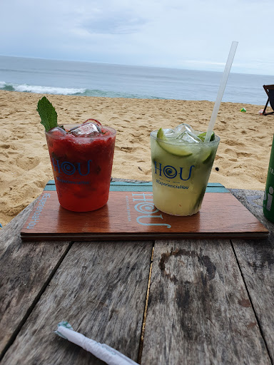 Read moreFomos no Hou numa sexta-feira próximo das 16h e encontramos muitas espreguiçadeiras e mesas disponíveis. O lugar contra com um amplo espaço pra você curtir um bom tempo na praia tomando drinks e cerveja gelada. A praia em si é de tombo e não recomendado pra criançada brincar, mas passei um tempo bom brincando com meu filho na areia onde a água chegava pra desmoronar nossos castelinhos. O bar conta com ducha pra tirar aquela areia teimosa e os banheiros são limpos e espaçosos. As mesas do restaurante são amplas e convidam pra um bate papo sem pressa olhando para o mar. Fomos atendidos pelo garçom Éder, moço muito simpático e atencioso, assim como as outras pessoas que trabalham no local que nos atenderam com igual apreço. Pedimos dois pratos a lá carte: Abadejo e Pescada Cambucu ao molho de camarão. A comida é gostosa, demorou quase 1h pra ficar pronto e achei que se viesse uma porção de arroz pra comer com o peixe seria bem legal, mas o prato em si não vem arroz. Minha esposa pediu a sobremesa do dia que era de banana com calda de chocolate e sorvete, muito boa por sinal e eu pedi o famoso pastel de camarão e de fato é bem gostoso mesmo (gostei mais que o prato), tem recheio do início ao fim e pode contar como uma refeição. Ah, eles tem um conjunto de molhos de pimenta que é classificada pela ardência, nesse conjunto encontrei o molho de pimenta Scorpion e de fato é ela mesmo, com toda sua pujança e ódio pela vida alheia, adoro essa pimenta! Recomendo o lugar pra você passar o dia e encher o buchinho, tem banheiro, tem bar pé na areia, tem comida e tem sombra, é o que a gente...