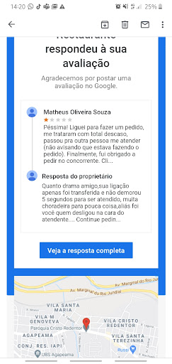 Já fui outras vezes, comida maravilhosa, mas da última vez cheguei 13:00 no domingo para almoçar, consegui uma mesa para almoçar somente 13:50, esperei mais de 30 minutos sentado para a garçonete limpar a mesa e nada, uma família grande que chegou bem depois de mim, sentaram e logo foram atendidos na minha frente, a família dele era grande né, ele iria consumir mais que a minha família (eu e minha esposa) total descaso com os clientes, não tendo o mínimo de percepção aos clientes que chegam primeiro, independente de uma família ter 8, 10 pessoas e a outra ter 2, local que não entro mais, total descaso com clientes. FALTA DE MÃO DE OBRA, POIS TINHA APENAS 2 GARÇONETES PARA ATENDER TODO O RESTAURANTE!!! Sobre a resposta do quadro de funcionários reduzido, para se resolver isso é simples, apenas exclua do seu restaurante algumas mesas, para que no caso, suas garçonetes consigam atender todos os clientes adequadamente, e outra coloque instrução ao seu comércio para que, atender na ordem de chegada, é não mesas com maior número de pessoas, para q aquela mesa vai consumir mais seu produto. REPITO FAZ POUCO CASO DE NÃO SE PREOCUPAR COM O QUE É MAIS PRECIOSO EM UM COMÉRCIO, SEU CLIENTE. REVEJA SEUS CONCEITOS NESSA FASE Q ESTAMOS PASSANDO, COLOQUE LUGARES NO QUAL SEU QUADRO DE FUNCIONÁRIOS POSSA...