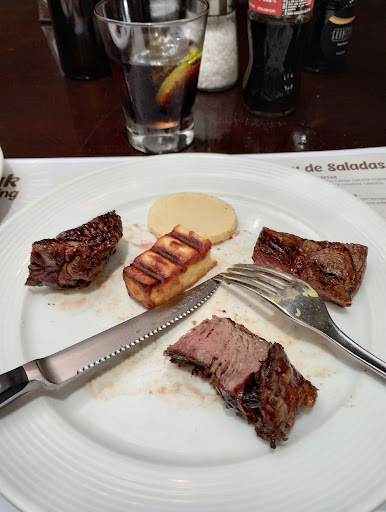 Read moreFrequento desde a inauguração, e a qualidade das carnes servidas oscila. Às vezes excelentes, às vezes mediana, mas geralmente saio satisfeito. Porém o que me incomodou bastante na última visita foi o comportamento do gerente e alguns funcionários. Tudo estava perfeito até o momento que encerramos a sequência de carnes e fomos pedir a sobremesa. Começaram a nos apressar de maneira nada sutil, querendo que pedíssemos a conta pra liberar a mesa. Os garçons (certamente seguindo ordens) iam à mesa com uma frequência espantosa, enchiam os copos de bebida até quase transbordar pra retirar as garrafas, passando pano na mesa, perguntando se tínhamos acabado. Poxa, éramos dois casais na mesa conversando e saboreando a sobremesa sendo praticamente expulsos. Consumimos bebidas caras e sobremesas, valor da conta relativamente alto, e recebemos esse tipo de atenção. Ressalto que não havia fila de espera, e muitas mesas estavam vazias. Não estávamos enrolando, e tampouco sendo inconvenientes no ambiente, diferente da mesa ao lado que estava bastante ruidosa e deselegante. Então, apesar de não ter ressalvas acerca das carnes e acompanhamentos, a má impressão no fim do atendimento foi o que nos marcou negativamente. Para um restaurante que se propõe a passar uma imagem "sofisticada", o mínimo que se espera é um atendimento cortês e que valorize a presença do cliente. Continuarei a frequentar porque me agrada o paladar, mas revejam esse atendimento típico de restaurante de...