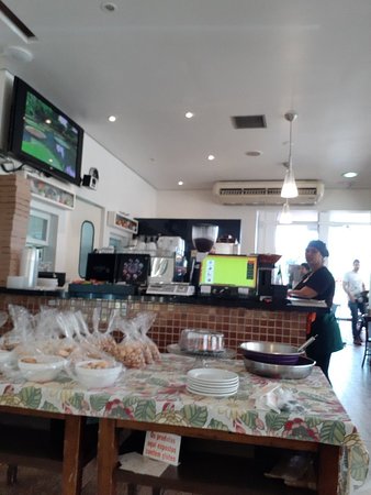 Read moreDia 09/01/24. Ao lado da sopa tinham 4 tigelas, as 4 sujas! Pedi outra e as funcionárias do lado de dentro do balcão não gostaram, ficaram resmungando. Pedi tapioca de rúcula com tomate seco e peito de peru, além do tamanho ter diminuído ( isso não estava informado no cardápio), ela estava fria, parece que a tapioca já estava pronta. Mas ainda piora: o peito de peru, em algumas partes tinha gosto de carne (ou seja, nem limparam a chapa só pode ser isso...). Mas piora ainda mais: perguntei sobre o recheio de um croissant, "chocolate", pedi dois, chegando em casa estavam duros, secos e eram de goiabada e aí a criança ficou chorando, pois queria de chocolate... Ah! Tem mais coisa ruim: no caixa, comentei com a funcionária sobre a tapioca, ela disse: "eu sou só caixa mesmo, infelizmente não posso fazer nada". Você não pode levar a informação para a pessoa responsável? "Não, você precisa falar com a gerente.". Não ia perder meu tempo....