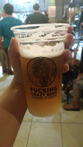 Read moreO Fckng Crazy Boss é um lugar agradável, decoração diferenciada, com bom som rolando de fundo (geralmente rock). O atendimento é excelente com pessoas educadas e sempre sorridentes. Há uma boa opção de cervejas artesanais, com diferenciados preços. Há cerveja para todos os gostos e, para mim, todas que bebi eram muito boas. O lado negativo fica por conta da enorme fila para comprar cerveja e/ou sanduíche. A fila fica no meio do ambiente e isso lota muito o espaço. Não há muitas mesas para comer tendo que às vezes comer na rua em pé. Isso pode desagradar. Outro ponto negativo fica na qualidade do hambúrguer que caiu drasticamente nos últimos tempo e o preço que aumentou. O gosto é até bom mas o tamanho é do nível Cheeseburger do Mcdonalds. Fiquei bem decepcionado. Ainda mais pela propaganda dos hambúrgueres que havia feito para a pessoa que estava comigo.