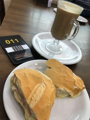 Primeiro tudo o que foi solicitado veio “picado”, solicitamos dois cafés com leite, um café puro, três pães com manteiga na chapa é um pão de queijo e o atendente referido trouxe apenas os dois cafés com leite;