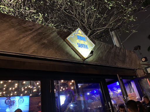 Estive no Boteco Todos os Santos com outras três amigas. No dia, o espaço não estava lotado mas podemos considerar que estava cheio. Como atração havia uma cantora que fez cover das músicas que estavam entre as mais tocadas nas rádios, em sua maioria música pop e funk, não tanto sertanejo como é o que eu entendi que em geral toca na casa. Chegou em um momento da noite em que a banda já tinha esgotado o repertório e anunciou que estava tocando novamente algumas músicas devido a pedidos. Desta forma, naquele dia a atração (acho que o nome era Ana Luisa, não tenho certeza) não valeu a pena. As bebidas estavam boas, tomei duas caipirinhas, no entanto achei os copos pequenos considerando que boa parte dele é gelo, né? É um bar/balada hétero, portanto rolou iniciativas de flertes mas se você dizia não...ninguém te atacava. Apesar que a minha amiga passou trabalho com um cara que toda a vez que passava por ela dizia que estava apaixonado e ficava ali um tempinho insistindo. O que foi chato mesmo foi uma briga que aconteceu entre um cara que estava muito bêbado e um outro cara que dançava com uma menina. A briga aconteceu porque o cara totalmente bêbado tentou dançar com o par do outro. Esse momento deu uma quebrada na energia da noite. O caso foi resolvido pelos próprios amigos dos cara muito bêbado, que apartaram a brigada e tentaram conter os impulsos do amigo e não teve envolvimento da segurança do bar. Em resumo, a experiência foi ok. Eu não voltaria ao bar porque não é o tipo de lugar que eu frequento, mas para quem gosta ou está buscando flertar/pegação,...
