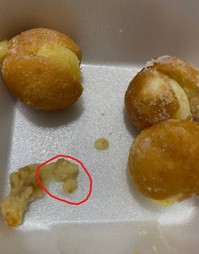 Mas nesse final de semana foi o pior acontecimento de todos! Compramos alguns mini sonhos, e enquanto meu noivo estava comendo o primeiro, tirou da boca um pedaço grande de vidro. Obviamente tivemos que jogar todos eles fora, e mantemos agora um grande medo, desconfiança e insegurança com essa padaria, após tantas experiências ruins.