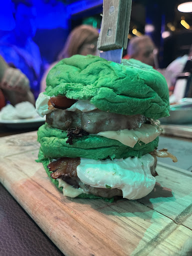 Talvez tenha escolhido mal no cardápio, mas eles servem um sanduíche gigante com pão verde e molho de gosto desagradável. No geral era um sanduíche sem gosto.