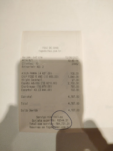 Great service, excellent meat. They will dare asking you to fill a form (Google review, the same one I am not just editing it) and insist to put the servant name on it. Then the bill comes, together with the scam. They automatically add around 15% for service. The caipirinhas I ordered were automatically made with premium cachaça (68 BRL each!) without me asking for that. The total amount is then circled on the receipt. Once I realized that I said that I was going to leave a tip cash, as I usually do. The waiter “accidentally’ inserted in the POS the amount including the tip. Once the receive was printed, he nicely folded it and handed it to me, so I could not see that I got charged a bigger amount. I had to call the restaurant manager, it took a while to get my transaction cancelled. Furthermore I could see they still kept the wonderful tradition of going around the tables offering 43 and Port wine out of big bottles to customers, without telling them it was not complimentary. As I fell for it many years before covid in the same restaurant, I declined that. Please do yourself a favor, go to a classier place in Itaim and have some...