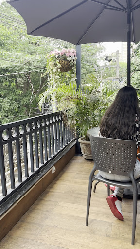 The atmosphere is really cool, it has 2 levels, a front balcony outdoor area to sit on the second floor and a back outdoor area to sit, along with all the indoor...