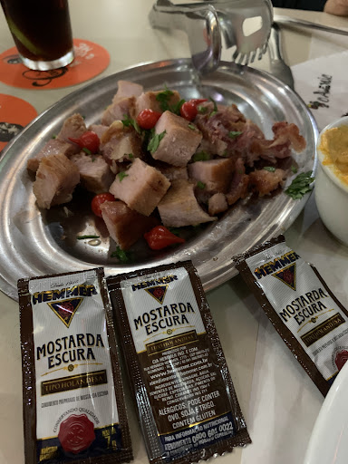 Read morePedi uma porção de bisteca com páprica, no valor de R$49,00 reais. A porção demorou 30 minutos para chegar e quando chegou... veja na foto! A carne estava sem a gordurinha da bisteca, seca, sem tempero, sem páprica, fria e sem sal! Não tinha gosto algum na carne e pra piorar veio esse “molho” tipo molho branco, com certeza esquentado em microondas, horrível! Sério! E eu sou super de boa e acostumado a comer em lugares muito mais simples que esse. Não tinha molhos a disposição, o garçom colocou na mesa esses saches de maionese e mostarda que vc acha em carros de comida de rua, sem contar que num bar que se chama “ O alemão “ só tinha 3 saches de Mostarda HOLANDESA. Sério! Uma vergonha, perdi meu tempo, paguei caro por um produto horrível, mal tratado. Na mesma calçada por R$10 reais a menos, se compra uma porção com 10 coxinhas no Frangó, que ao contrário são incríveis! Não pretendo retornar, e não indico. Sem contar que o bar tem uma decoração velha e não tem nada a ver com o nome. Como diz Eric Jacquin, se esse bar é Alemão,...