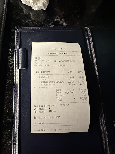 Read moreFomos a unidade do Itaim. Estavamos com uma expectativa muito alta , muito pelo local, valor, publicações, e vídeos nas redes sociais. Infelizmente tivemos uma experiência desagradável. Atendimento desorganizado, pedido não atendido, demora, apresentação do combinado de sashimis que mais pareciam que haviam sidos jogados no prato. Enfim, deixamos de ir ao OUE Sushi no Alphaville onde já tivemos uma excelente experiência, para experimentar o OGuru .