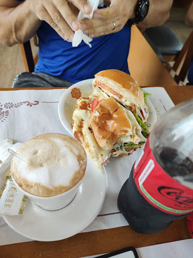 Read moreMaravilhosa!!! Por mais padarias assim!!! Gente, estávamos em 4 pessoas (dois adultos e duas crianças) fomos no mesmo dia tomar café da manhã e jantar...pela manhã, tem self service (74,99) se não estiver enganada, mas fizemos o pedido pelo menu. O rapaz que nos atendeu, super atencioso, prestou atenção nos nossos pedidos (super eficiente). E em menos de 10m chegaram todos os pedidos (uau) raro isso...muito, muito bom...o bolo de cenoura estava divino. Depois voltamos para jantar e comemos um churrasco na baguete e as crianças um burguer....fomos super bem atendidos, e os pedidos tbm não levaram 10m para chegar. Muito gostoso o lanche. Tomei um suco tropical muito bom (coco, abacaxi e maracujá)...tem estacionamento na lateral...fomos em um domingo, tem bastante lugar para sentar e os principais pontos positivos: estacionamento, ambiente, eficiência e cordialidade no atendimento, entrega dos pedidos rápida e muito saboroso. Com certeza, voltaremos quando formos passear...