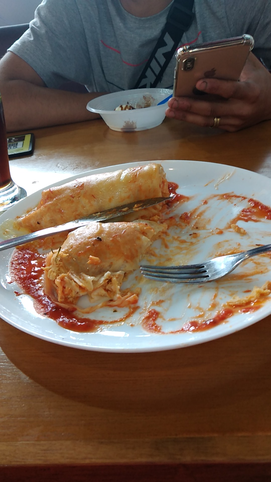 Eu não sei quem ensinou esses garotos a fazer um cappuccino. Mas parecia que a receita era só café com água e cacau. Nunca tomei um cappuccino tão horroroso. A decepção foi tão grande que deixamos tudo lá é fomos pagar a conta e procurar um lugar melhor pra Tomar um cappuccino de verdade e tirar o ranço.