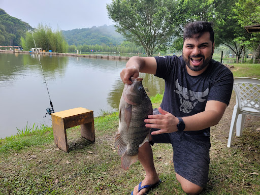 Read moreLagos sao grandes, por isso os peixes sao mais ariscos, mas experimentando algumas iscas a gente acaba pegando. No lago so de tilapias gosto dos lugares mais rasos que saem mais. Tem uma feirinha com frutas, legumes e verduras produzidos no local, os quais tem otima qualidade e coloracao se comparados com os de mercado. Vi um senhor que faz quick massage por la tbm. Tem o pessoal da lanchonete no terreo e o pessoal do restaurante no primeiro andar (a vista é otima!), aparentemente funcionam separados, mas tanto os lanches e pocoes quanto a comida no restaurante sao uma delicia! Muito bom pra comer e pescar, mas pra pescar tem que estar ciente de que pesqueiro nao é tao facil como eu mesmo pensava, tem dias bons, lugar no lago bom, isca boa para o dia e a finalidade da pesca. No pesque e pague tem mais peixes pois vc pesca e leva todos os peixes que pegou, dai o interresse que vc pegue muiito e nao ha muita preocupacao com a saude dos peixes. Ja na pesca esportiva que é o mais praticado por la, vc pega e em seguida solta o peixe (mas.pode levar e pagar se quiser) sem machuca-lo. Ha uma preocupacao maior com a quantidade de peixe por metro cubico e como os lagos sao grandes.....ja...
