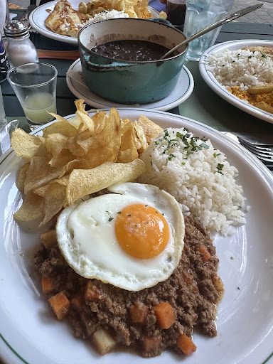 At lunchtime, they serve a well-prepared executive menu with black bean soup, salad, a main dish, and dessert (usually a coconut cake or fruit salad). Their beans are black beans, typical from the Rio de Janeiro region. The executive lunch dishes are very generous and delicious.