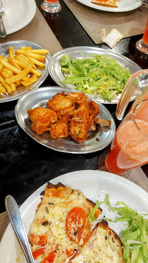 Read moreComi no rodízio: -Preço acessível não passa de quarenta reais, sendo que é no shopping eu acho acessível. -Tem pizzas salgadas, pizzas doces, batata frita e Frango a passarinho (uma delícia, a carne se desfaz na boca) incluído no rodízio. -Na mesa tem açúcar, sal, azeite e um vinho lacrado para caso queiram comprar. -Dono de lá bem receptivo. -Os garçons também todos simpáticos mas pequenas atitudes me incomodou, por ex. Uma hora uma garçonete literalmente gritou no meu ouvido sendo que estava bem do lado, para dizer o sabor da pizza. -As pizzas são gostosas, a massa é bem fina, são recheadinhos. -Percebi que lá é por kilo também, tem muitas mesas de self service e também pode pegar churrasco e pesar no final. -Não sei se tem banheiro mas creio que não. -Local com limpeza ok. -Uma coisa ruim é que se levar bolsa essas coisas, é mais seguro deixar no chão perto das pernas, pq a cadeira é meio pequena e ruim de deixar pendurado e também tem o medo de alguém levar, muita gente vai...