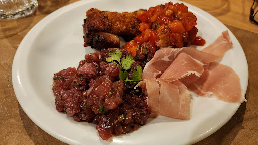 Primeira experiência com o Ráscal e não poderia ter sido melhor! Queríamos um lugar legal para comemorarmos 10 anos de relacionamento e escolhemos o Ráscal. Escolhemos o buffet, que dá direito a duas praças de saladas e a ilha de massas. Na praça de saladas tem muitas opções, como folhas, queijos, azeitonas, tomates secos, salpicão de frango, atum selado com crosta de gergilim, pães, tortas, pizza aperitivo, etc. São muitas opções e tudo muito gostoso! E a ilha de massas é sensacional! Pedi polpetone (o famoso polpetone do Ráscal é incluso, mas tem outras opções de proteína que são inclusas no buffet e as outras opções de proteína são cobradas um valor a parte. É bom consultar o cardápio), fettuccine com molho de tomate. A melhor massa que já comi, é muito bom! E o polpetone incrível também! Meu marido pediu fettuccine, ravioli com molho branco e estava muito saboroso também! Como adicional pedimos uma parmegiana de filé mignon que estava muito saborosa! Foi uma experiência muito legal e queremos voltar! ❤️