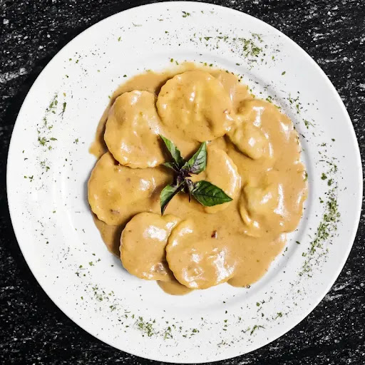 I ordered the squid ink pasta with seafood. It came with large prawns that were quite good. The pasta sauce, however, was sweet and sauer. Apparently it's a tangerine sauce, and when they say that, they mean the sauce is literally tangerine juice. It tasted almost like a dessert. I love squid-ink pasta and was severely disappointed. One of the waitresses noticed I didn't eat the pasta itself and offered to bring another pasta, a ravioli. It came cold, with sweet tomato sauce, and slightly raw on the edges, just passed al dente. I didn't send it back because I was tired of being a pain.