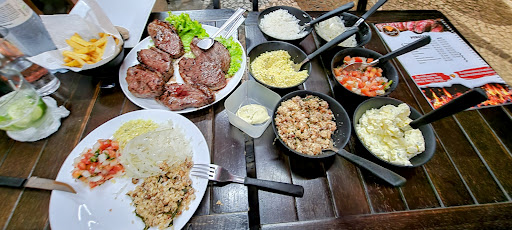 Read moreLocal bem aconchegante, bem lotado, localizado. Com a comida maravilhosa, muito deliciosa. Pedimos bife angus e picanha, os acompanhamentos foram arroz, feijão tropeiro, farofa, maionese (aquela com batata), salada, batata frita, maionese verde, banana frita. E sim todos eses acompanhamentos acompanham todas as carnes, e você pode repetir quantas vezes desejar (exceto a batata frita e banana frita). Fiquei impressionada com a quantidade de acompanhamentos na porção e ainda poder repetir, nossa esse é o único lugar que vi, e pensa naquela comida caseira extremamente deliciosa. Certamente se eu voltar para Santos, vou comer nesse local, super recomendo. Gente e a BANANA , nossa sem explicação é sem dúvida a melhor Banana frita do mundo!, eu comi 4 bananas (equivalente a 2 porções), e confesso que pudesse, comia mais 🤣. Gente o Chopp de Vinho, nossa muito bom, realmente ...
