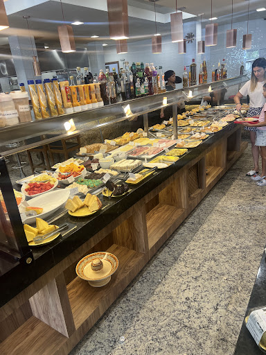O buffet não era tão variado nas misturas (no momento da janta pelo menos), mas tinha variedade de saladas. Ainda sobre o local, tudo bem limpo e organizado.
