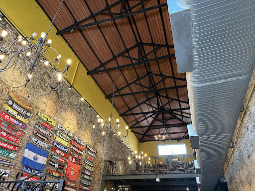 Durante a pandemia, você toparia viajar de SP para Santos somente para almoçar? Pela Tasca do Porto sim. Fizemos isso por conta da excelência culinária e de tudo que envolve este representante fantástico da gastronomia lusa. Próximo ao Museu do Café, a bela fachada do prédio restaurado prepara nosso "teletransporte" para Lisboa ou localidades afins da "terrinha". Quando começamos a frequentar a Tasca, ainda era em outra casa na mesma rua com grades na frente e um visual mais datado. (O estabelecimento original foi inaugurado em 2013. As novas instalações foram abertas em julho de 2020. Segundo os posts do perfil deles no Instagram.) Atualmente, a entrada é mais ampla e aberta por inteiro, dando espaço ao salão de pé-direito altíssimo; equivalente a dois pavimentos. Nas paredes, um estilo rústico com paredes de tijolos à vista da construção existente, misturadas a pedras e concreto. Gosto da autenticidade do mural com flâmulas de times de futebol português: um toque folclórico sem ser clichê. Bora para o objetivo: comer, beber e se deliciar! A Tasca iniciou-nos na cerveja portuguesa Super Bock (R$ 16; long neck lager puxada para o amargo) acompanhada de uma porção de bolinhos de bacalhau (R$ 46; seis unidades). Como prato principal, o bem servido, tradicional e saboroso Bacalhau à Gomes de Sá (R$ 128 para um; R$ 224 para dois; R$ 320 para três) - pescado em lascas com batatas, alho, cebola, azeitonas, ovo cozido e salsinha puxados no azeite de oliva. Um banquete! Essa configuração sempre foi nosso menu "padrão" na Tasca. Em nossa visita mais recente (jan/25), arriscamos mudar nosso ritual: Polvo ao Vinho (polvo puxado em alho e vinho, com batatas e brócolis, e acompanhado de arroz de brócolis). POW! Um esplendor culinário! Cheio de aromas e paladares. Bem temperado, proteína macia, todos os pertences com fartura. Dica: fomos salvos pela atendente que nos recomendou a versão para uma pessoa (R$ 144); senão, teríamos de carregar as sobras nos passeios da tarde por conta do gigantismo das opções para mais bocas. O cardápio da Tasca é extenso e cobre todos os tipos de paladares - mesmo para quem não é fã de peixes. Pela grande procura por grupos de turistas e pelo tempo médio razoável de permanência (45 min de acordo com o Google), pode haver filas. Mesmo assim, o grandioso salão vai acomodar todos e a muitos. Só um pouquinho de paciência ;-) Para abrilhantar ainda mais a casa, a equipe é atenciosa e consegue dar conta de um mar de mesas - com maestria e um sorriso :-) Para relembrar ou apreciar o melhor da cultura e da culinária de Portugal, a Tasca do Porto sempre será nosso restaurante...