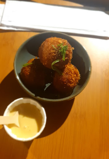 Pedimos uma entradinha de bolinho de salmão (4 unidades) com maionese da casa (R$22,00). Muito gostoso, fritura super sequinha e a maionese da casa é saborosa e diferente.