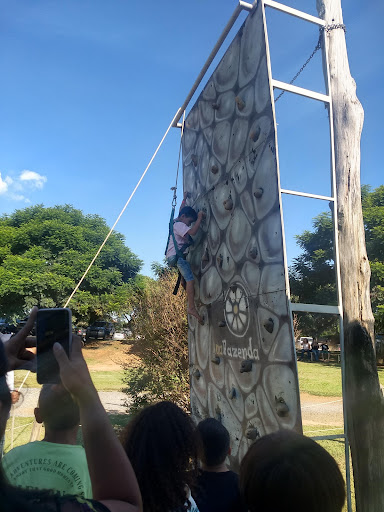 Read moreO local é bem agradável, as mesas estão distribuídas entre a parte coberta (lona) e embaixo das árvores (ao ar livre). A refeição tem preço único e vc pode comer a vontade se servindo de comidas deliciosas e também do churrasco e com direito a sobremesa. Já as bebidas, sorvetes, chocolates e itens da lojinha são cobrados a parte. Tem também a opção para criançada brincar sem pagar (playgraund) e curtir os animais que são criados ali como patos, galinhas, perus, coelhos e porcos e tem a opção paga que inclui brinquedoteca, piscina de bolinha, pula-pula, passeio de mini-fusca, mini rapel e outros (com monitor), porém, achei o preço um pouco elevado (difícil ir com criança e não pagar para desfrutarem de todas as opções). Após o almoço, que tal relaxar numa rede? Sério!!! Há uma área verde cheia de redes para quem quiser relaxar mais um pouco. Tem música de boa qualidade tocando a todo momento e o restaurante tem vista para um lago que é um descanso para os olhos (pena que fica um pouco afastado). Agora, chegue cedo, pois o lugar costuma ficar muito cheio (começas as 11:00 e vai até as 16:00) e só abre aos domingos (uma pena). Referente a valores, sugiro ligarem para o nº (11) 97556-8080 que consta nos anúncios de internet. Mas enfim, vale a pena sair um pouco da rotina e curtir um almoço "Na Fazenda". Agora, se vc é cheio de frescura do tipo que "aí, tá caindo folhas das árvores em mim" rsss... então vá almoçar em um...
