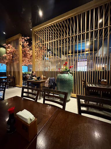 O Kanpek tem um ambiente moderno e espaçoso, com uma parte externa menor e salões internos amplos. A decoração mistura elegância e minimalismo, com bastante madeira, divisórias japonesas, árvores de cerejeira e vasos grandes, criando um clima aconchegante e bem cuidado.