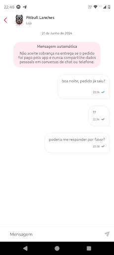 Read moreSe pudesse avaliar com 0 estrelas eu faria! "Profissionais" péssimos! Pedi pelo ifood e passou mais de uma hora do tempo estipulado para entregar...não respondem o chat e nem a porcaria do whatsapp! Se não tem tempo pra preparar a comida simplesmente não aceitem o pedido, oras! Além de ser péssimos no atendimento ainda enviaram o pedido errado! Paguei por 2 pratos e conseguiram enviar os dois errados! Enviaram os restos q tinha na cozinha, só pode! Não deu pra comer,estava intragável! Ainda bem q o ifood deu a opção de enviar as fotos e fui ressarcida no mesmo dia! Falta de respeito com os clientes! Tinham que ser banidos do...