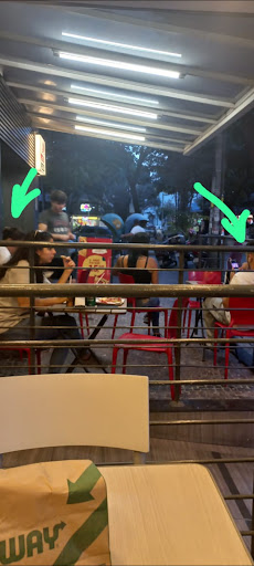 Moral da história, além de usar o banheiro (do Subway) também precisei me sentar na mesa do Subway, onde eu acabei comprando uma sobremesa (pois fiquei sem graça de não consumir nada). Da hora que eu cheguei até ir embora, duas das três únicas mesas do estabelecimento seguiram ocupadas por funcionários da pizzaria (aprox. Uns 25 min).