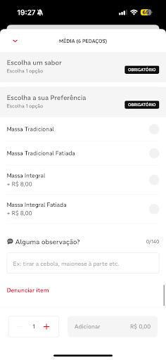 Fiz um pedido no ifood, onde na observação coloquei SEM QUEIJO. Enviaram um sabor com, outro sem, informando na observação só fala sem queijo. Como? Se é um campo de observação por item? Se eu selecionei uma pizza, não importa o tamanho e quantos sabores é SOMENTE UM CAMPO DE OBSERVAÇÃO, não existem um campo de observação por sabor. Não conhecem a própria plataforma em que eles escolheram vender e ainda querem falar que Eu deveria ser mais clara, pq eles achavam que era um campo de observação por sabor!!! Sou autista e tenho seletividade alimentar, e é incrível como essa unidade da Baggio sempre erra os pedidos e no fim culpam o cliente, pela incompetência deles em seguir o pedido.