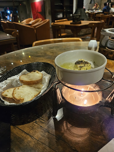 Read moreRestaurante suíço contemporâneo, nas Mercês. Possui uma bela entrada e um interior bem decorado, elegante, agradável e aconchegante. As mesas distribuem-se por um grande salão, uma sala envidraçada e um mezanino, totalizando uns 190 lugares. Há uma lareira central, acesa nos dias de frio. Cada mesa possui uma coifa própria, para sugar a fumaça das fondues. O cardápio é extenso, com diversas opções de fondues (queijo, filet mignon, frango, pato, peixe, lombo suíno, camarão, bacalhau), crepes variados (queijo, filet mignon, bacalhau, pato, frango, camarão, champignon, tomate seco), pratos de carnes e saladas. As fondues de carnes podem ser feitas no óleo fervente ou sobre uma pedra aquecida, conforme a preferência do cliente, sempre à mesa. Vêm com diversos molhos, com maior destaque para sua variedade do que para o seu sabor. Para beber, há uma ótima adega de vinhos, apenas uma opção de cerveja e refrigerantes. Como sobremesa, há fondues (chocolate preto, chocolate branco, caramelo, leite ninho), crepes doces (Valentim, Suzette, doce de leite, maçã ao rum, maracujá) e sorvete. Para finalizar a refeição, um café expresso vai muito bem. O serviço é atencioso. Os preços dos pratos específicos são relativamente altos, mas costumam participar de festivais gastronômicos, nesses casos, com opções bem em conta. A casa possui um pequeno estacionamento próprio, mas também é fácil estacionar na rua. Importante fazer reserva. Local...