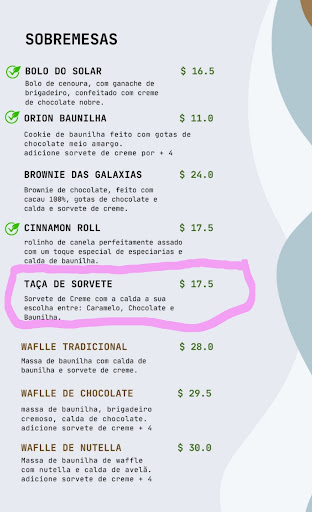 O cardápio é online, via qrcode que eu particularmente acho bastante ruim, já que quando vou passear, o mínimo que eu quero é ficar com um celular na mão.