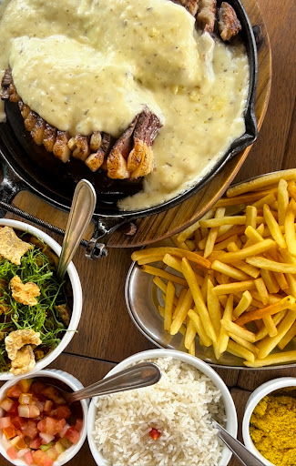 Lugar aconchegante, comida indescritível — o sabor começa já na entrada com pratos como um pão de alho irresistível e um queijo que dar água na boca. As carnes são simplesmente irresistíveis, e a salada é uma surpresa que você não pode deixar de experimentar. Atendimento impecável que faz você se sentir especial desde o primeiro momento, meu lugar favorito em Gv !