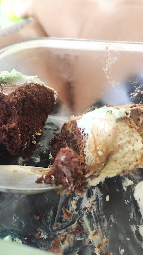 O bolo então foi uma decepção total , pois lá na padaria é tudo bom e as meninas muito gentis . Mas o bolo não veio como era p ter sido , recheio era bom, mas era p vir pedaços de chocolate que eram pouquíssimos, a parte de nata com morango então as fotos falam por si , a massa branca , pesada , dói difícil até de cortar .