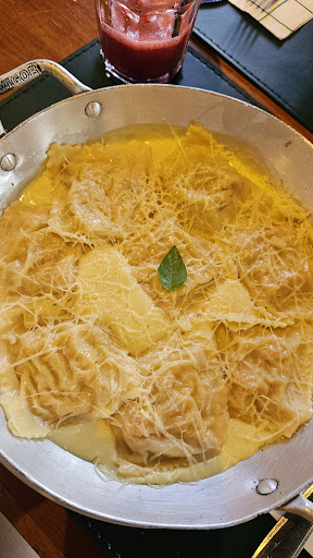 Ambiente agradável e com preocupação na estrutura acústica para diminuição do ruído. Atendimento atencioso e regular. Petit Formage de Cabra ao molho Arrabiata. 4 Gostoso, mas achei um pouco ácido. Picolo Caesar frango. 5 Saboroso e refrescante. Penne à lá Vodka com camarão. 4 Camarão perfeito, já o penne estava fraco no sal. Mas a mistura dos dois era boa. Ravioli de Salmão ao molho branco e endro. 5 Divino. Uma explosão de sabores. De sobremesa: Café expresso com uma trufa fake. Gelato de chocolate que não parecia gelato e sim um sorvete comum.