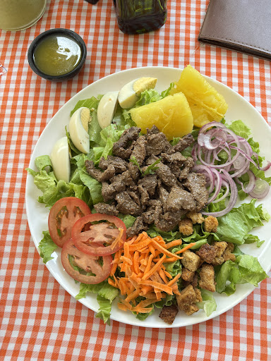 Read moreCheguei em Santarém tarde pós almoço, e no hotel me indicaram aqui para almoçar. Agora são 15:29h e eles estão com o cardápio completo ate tarde da noite! Pedi um prato de salada com proteína. Tudo estava muito saboroso, fresquinho e muito bem temperado! O suco de abacaxi com hortelã, super super geladinho e refrescante. O ambiente é cheio de árvores e plantinhas, extremamente ventilado e agradável. O preço foi excelente se comparado à qualidade! Os dois itens deram R$36… A playlist do local estava excepcional: tocando clássicos dos anos 80/90/2000. Os millenials são fãs 😄 Recomendado de olhos...