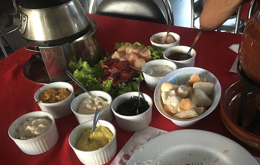Read moreNÃO GOSTEI!! Me indicaram esse restaurante para experimentarmos o famoso fondue tradicional. Fui com o meu companheiro em uma noite especial pensando que iria ser ótimo, mas infelizmente nos decepcionamos. Ao chegar no local ficamos esperando iguais uns patetas para sermos atendidos para assim pegar uma ficha só para entrar dentro do restaurante e assim pedir o "famoso fondue", até ai tudo bem, pensamos que seria uma espera de 40m no máximo, MAS NÃO, foi uma espera de 2HORAS(FILA) e não tinha muita gente na nossa frente se era 10 casais eram muitos. Enfim chegou a nossa vez, o cardápio não é os dos melhores, pedimos o fondue para o garçom e infelizmente não fomos muito bem atendidos, o garçom meio que jogava os acompanhamentos na nossa mesa. (uma loucura), o fondue salgado não nos surpreendemos, aperitivos simples, carnes e frangos não são temperados (mas, foi OK). Pedimos o fondue de doce, no cardápio tem as opções de dois chocolates, amargo e ao leite, como eu não gosto de chocolate amargo, esperaria vir o ao leite, mas o garçom nem se quer perguntou e já colocou na mesa aquele que tinha, perguntamos se não tinha de outro porque aquele era amargo, ele disse que era ao leite e só tinha aquele, se aquilo for ao leite não tenho mais papilas kkk. tinha algumas frutas, o morango tava com gosto de roupa suja, (vai lá entender) Enfim, não voltaremos. NÃO VALE o preço que pagamos. Em media um pouco mais...
