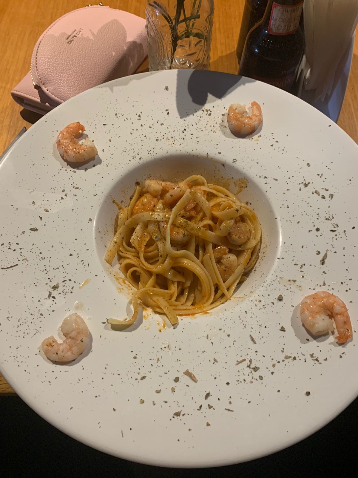 Primeira vez no restaurante e tivemos uma experiência hiper desagradável. Local sem ar condicionado, com um buraco no teto na direção da mesa. Nos colocaram em uma mesa embaixo de holofotes, passamos todo o almoço pingando de suor. A garçonete veio dizer que foi na época das chuvas que o teto caiu. Quero saber o que o cliente tem a ver com isso?! O estabelecimento que dê seu jeito para atender decentemente as pessoas. Feche o buraco de poeira, coloque um ventilador...Não bastando o perrengue de ser cozinhados vivos, chega a hora de receber os pratos do a la carte, R$28,90 em um fettuccine com 7 camarões contados. Tudo bem q prato com camarão em todo lugar é um miserê, mas a quantidade total do prato foi ridiculamente pequena. Quem pediu, ficou com fome. Igualmente o prato de parmegiana, muito pouco pra quantidade que pagamos. O sabor de ambos estava satisfatório, mas a discrepância de quantidade e valor foi decepcionante. Hoje um pacote de fettuccine não passa de R$6. Se a gente soubesse, teria ido pra o almoço na balança. Conselho: não peçam pratos a la carte. A única coisa boa foi o bolo. Nos doces acertaram, poderia virar uma doceria. Ponto negativo tbm para o atendimento. A garçonete atende numa leva só e não volta mais. O cliente que precisa ficar olhando pra ter a oportunidade de chamar a criatura que não retorna pra ver se a mesa precisa de mais algo. Uma mesa com várias pessoas precisaria de mais atenção, evidentemente. Pq tem muita gente. Se vcs colocam uma placa anunciando reservas para confraternizações, precisam rever urgentemente como melhor atender grandes grupos. Segue foto no fettuccine em quantidade suficiente para alimentar uma criança de 5 anos,...