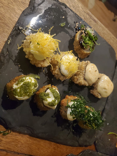Con: combinations (creative fusion but some of the flavor combinations just did not work) to much sauce