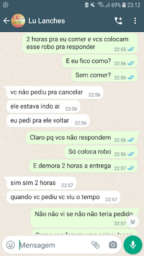 Péssimo pedi uma entrega e logo de cara colocam com um robô e já passa o tempo absurdo de 120 minutos 2 horas depois mandei mensagem perguntando se já tinha saído, ninguém respondeu por 20 minutos, então disse quero cancelar, ai sim responderam dizendo o motoboy já saiu, ai imagino eu, bom depois de 2 horas esperar 20 minutos não é nada, após 10 minutos me respondem ja avisei o motoboy, e eu imaginei que tinham avisado para dar prioridade, mas não era para cancelar mesmo e queriam que eu entendesse que estavam "lotados" e ao invés de mandar meu pedido foi mais cômodo respondem que tinham cancelado mesmo. Pura mentira nem Saido de lá tinha.